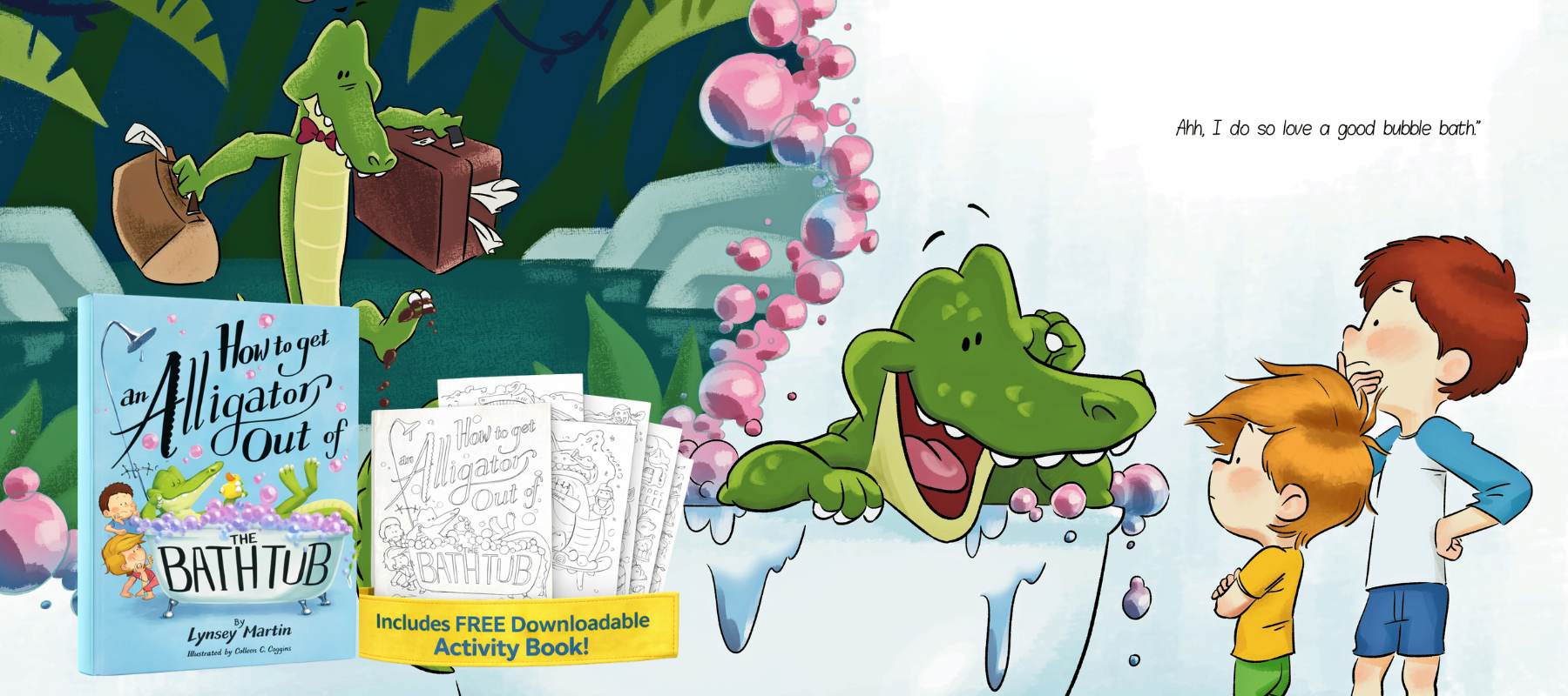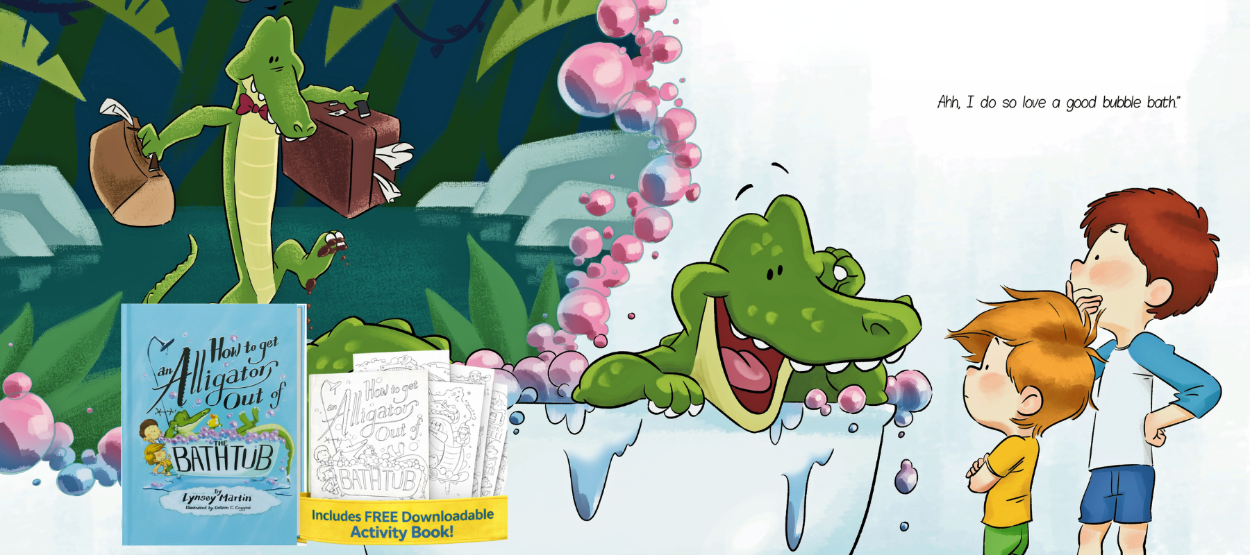 Come along with Peyton and Bennet as they befriend a lost alligator who has decided to make their bathtub his new home.